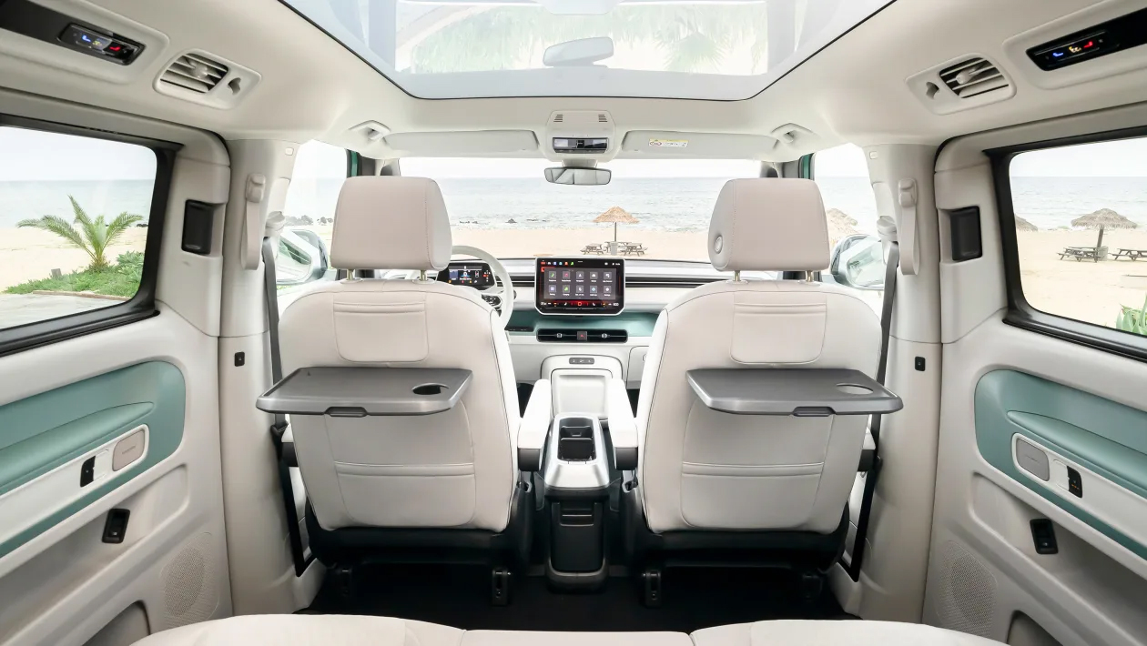 Í annarri röð er þriggja sæta skipulag sem staðalbúnaður, sem hægt er að fella niður í 40/60 skiptingu og hægt er að stilla sætisbakið um 16 gráður. Einnig er hægt að færa bekkinn fram og aftur um 200 mm. Að því er varðar þriðju sætaröðina eru þau einnig með stillanlegu baki, en hægt er að leggja þau niður eða fjarlægja alveg.