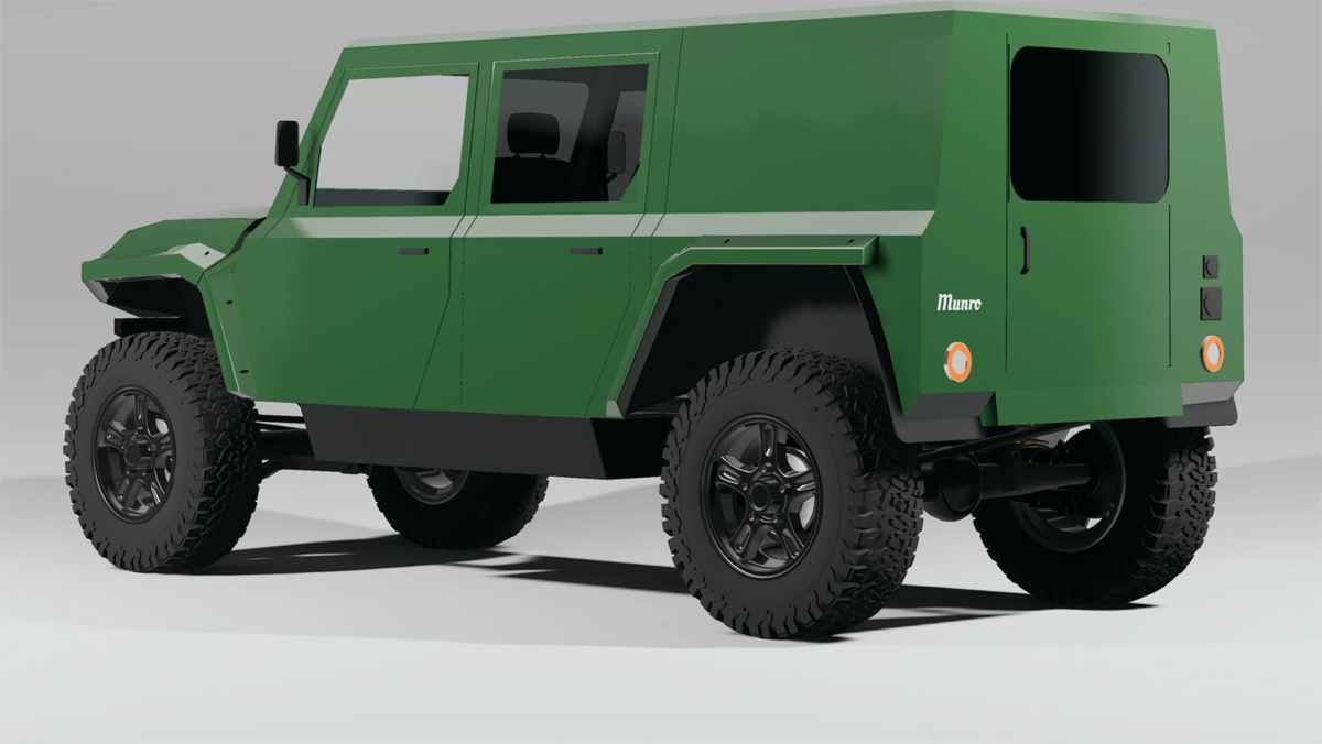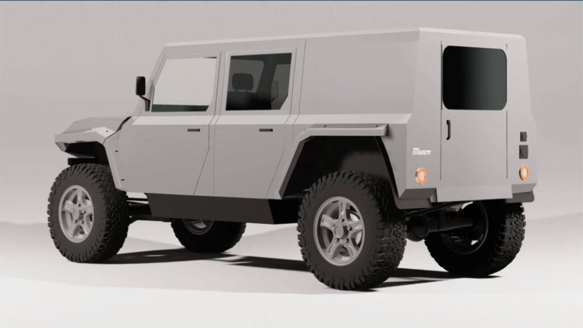 Hann er kallað Munro Mark 1 og, eins og allir bestu jepparnir, er hann byggt á einfaldri stigagrind og er með hefðbundna fram- og afturöxla, varanlegt fjórhjóladrif, driflæsingar og tveggja þrepa millikassa.