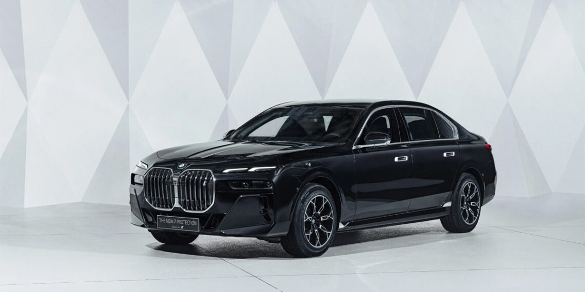 Brynvarinn rafbíll BMW býður upp á sérsniðna vörn gegn skotvopnum og sprengiefnum. BMW i7 Protection er með VR9 vörn í flokki sem byggir á opinberum prófunarviðmiðum frá Samtökum prófunarstofa fyrir árásarþolin efni og byggingar (VPAM) í Þýskalandi.