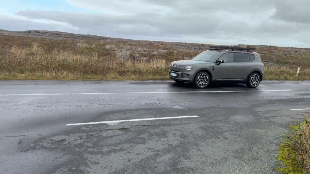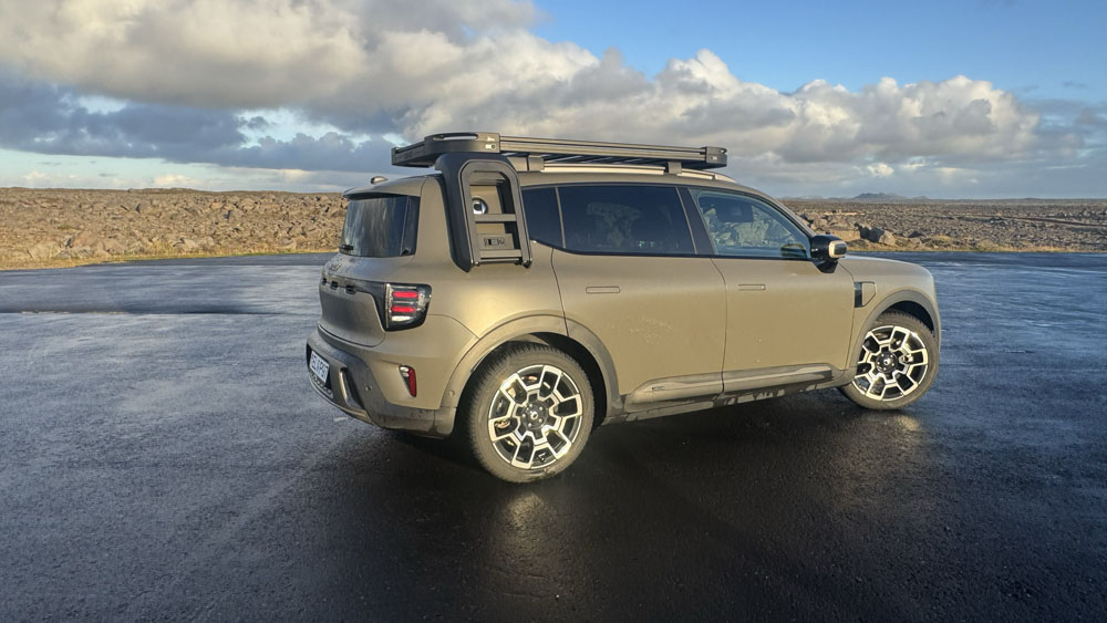 Útlitið er líka skemmtilega marghliða: maður sér bæði „dass” af Land Rover Discovery og jafnvel Mini Countryman – blanda af sportlegu, stækkuðu fjölskylduformi og ofurbílafasa.