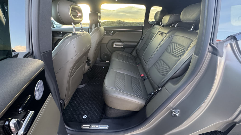Smart #5 er 4,7 metrar að lengd – sem gerir hann í raun örlítið stærri en Skoda Enyaq, og hann er bæði breiðari og hærri. Innstig er einstaklega þægilegt og rýmið inni í bílnum minnir frekar á stærri lúxusjeppa.
