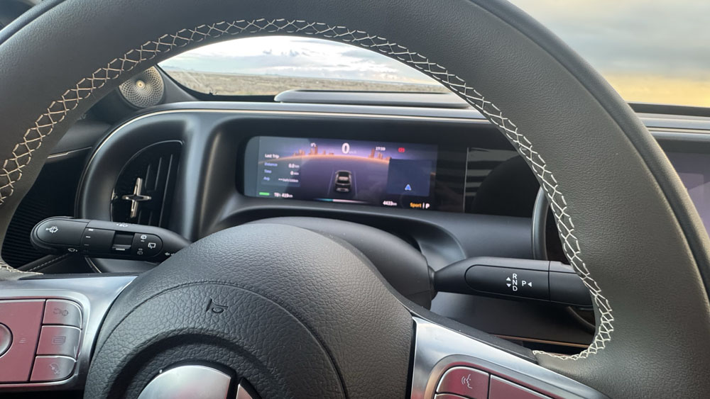 Innréttingunni er augljóslega hönnuð með aðkomu Mercedes – hún hefur þann lúxusblæ sem við þekkjum úr nýjustu C- og E-Class, bæði hvað varðar áferð, lýsingu og yfirlit yfir skjá- og stjórnbúnað.