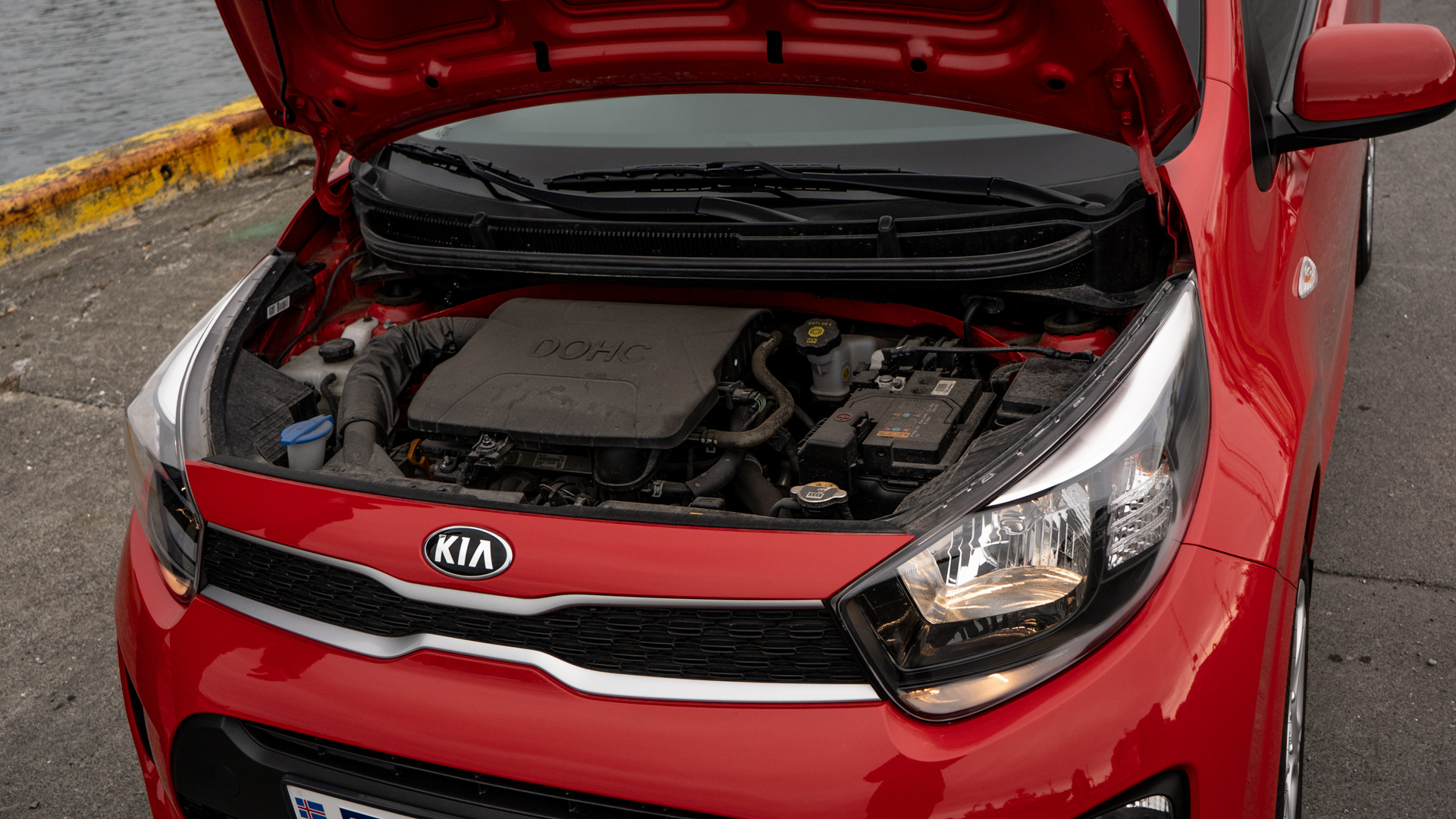 Vélin í Kia Picanto er í beinskipta bílnum, 1 lítra, þriggja strokka 67 hestafla vél en 84 hestafla 1.2 lítra vél í sjálfskiptum Kia Picanto. Eyðslan er frá 4.2 lítrum og uppí 5.4 lítra fyrir sjálfskipu vélina. Kia Picanto er á topp tíu listanum yfir hagkvæmustu og skemmtilegustu borgarbílana í Evrópu árið 2020. Þar á hann sannarlega heima. Hins vegar mætti aflið vera örlítið meira.