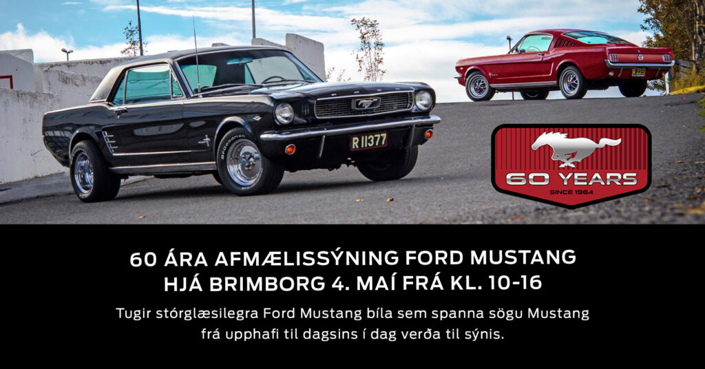 Þess verður minnst um komandi helgi, að 60 ár eru liðin frá því Ford Mustang sá fyrst dagsins ljós. Þá verða dýrmætustu og sjaldgæfustu Mustang-bílar landsins samankomnir á sérstakri afmælissýningu í Brimborg.