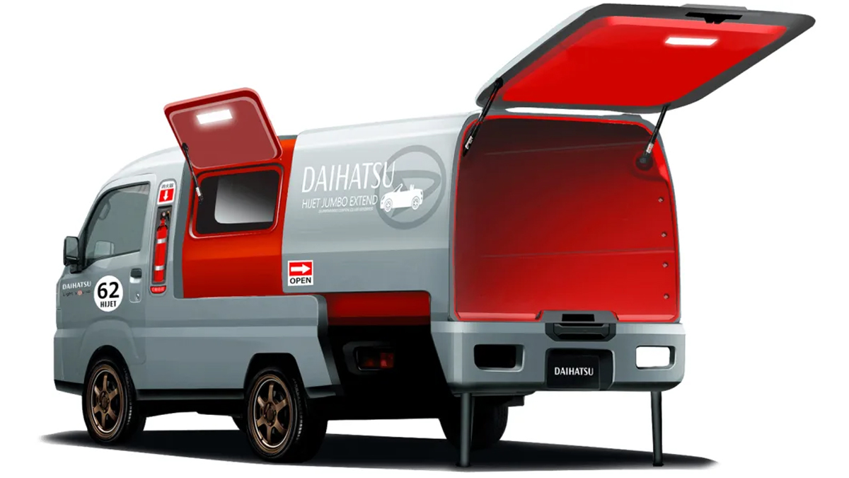 Hann er byggður á Hijet Jumbo, útgáfa af Hijet kei vörubílnum með lengri stýrishúsi.