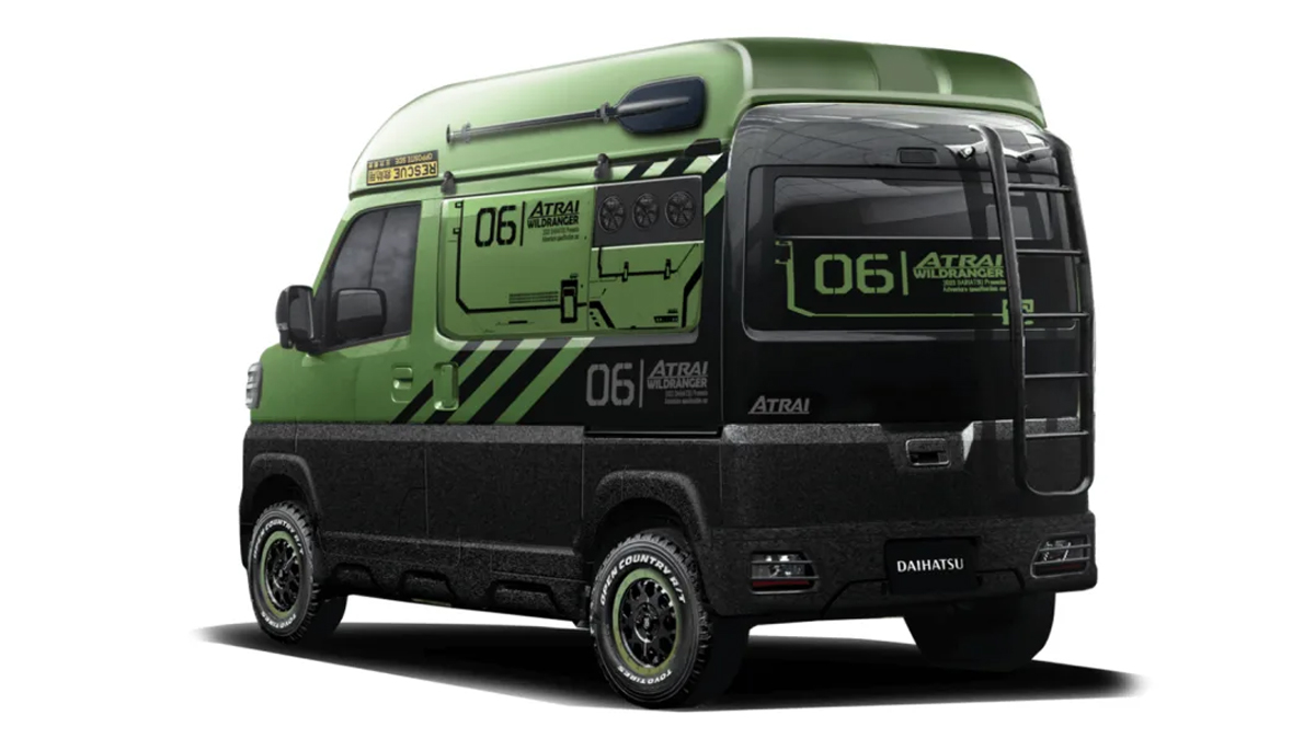 Fyrirtækið bætti við þykkum alhliða dekkjum og hliðarklæðningum meðfram neðri hluta Atrai kei sendibílsins.