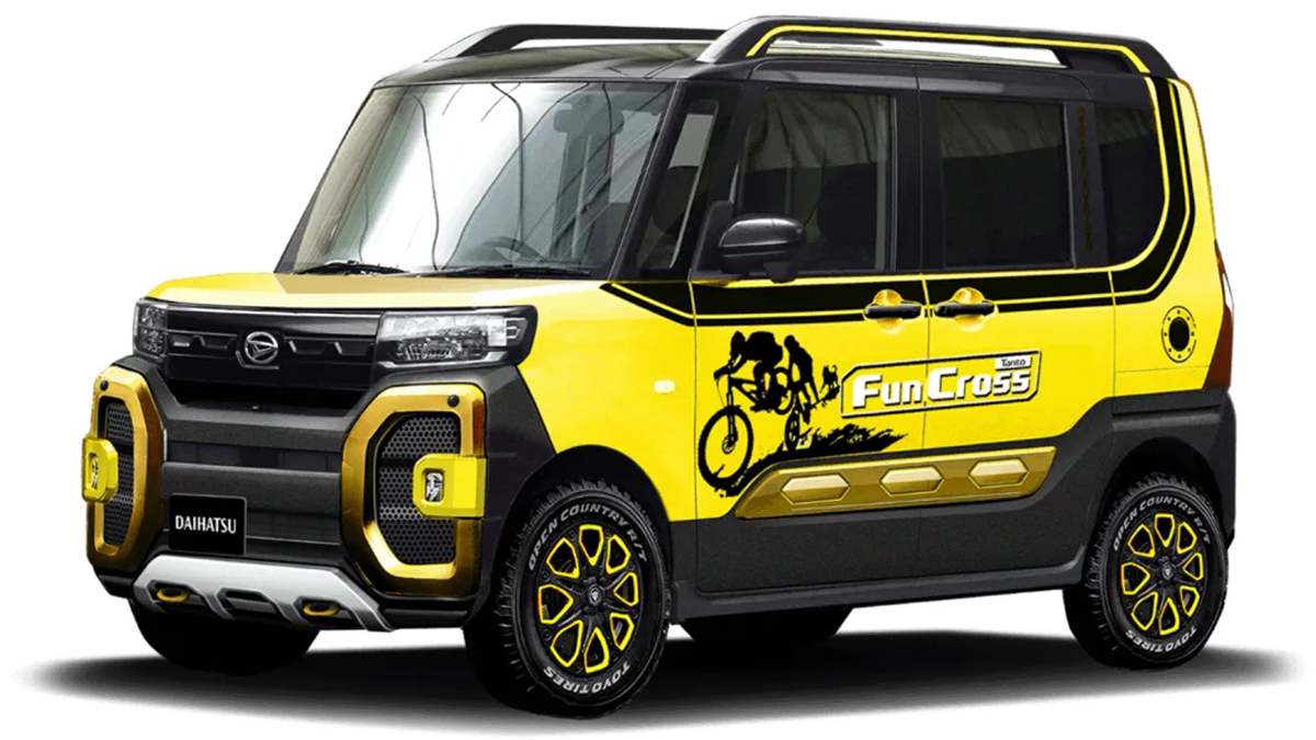Tanto Funcross er svipað tilfelli og Custom-bíllinn. Þessi er með svarta og gula litasamsetningu með þema í kringum hjólreiðar.