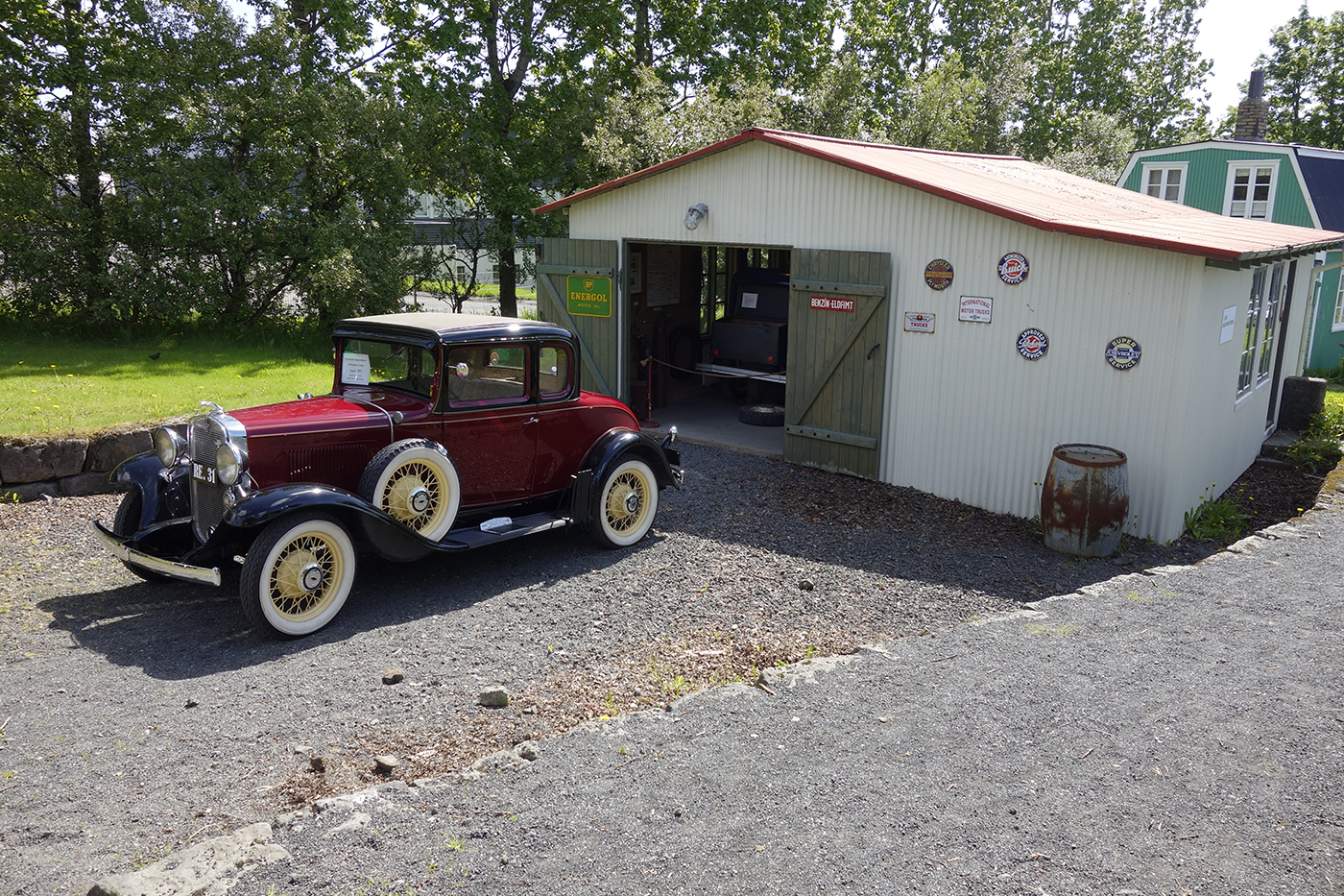 Gamla bílaverkstæðið í Árbæjarsafni dregur ávallt til sín fjölda gesta og ekki spillir að hafa fallega fornbíla í hlaðinu, líkt og þennan Chevrolet árgerð 1931.