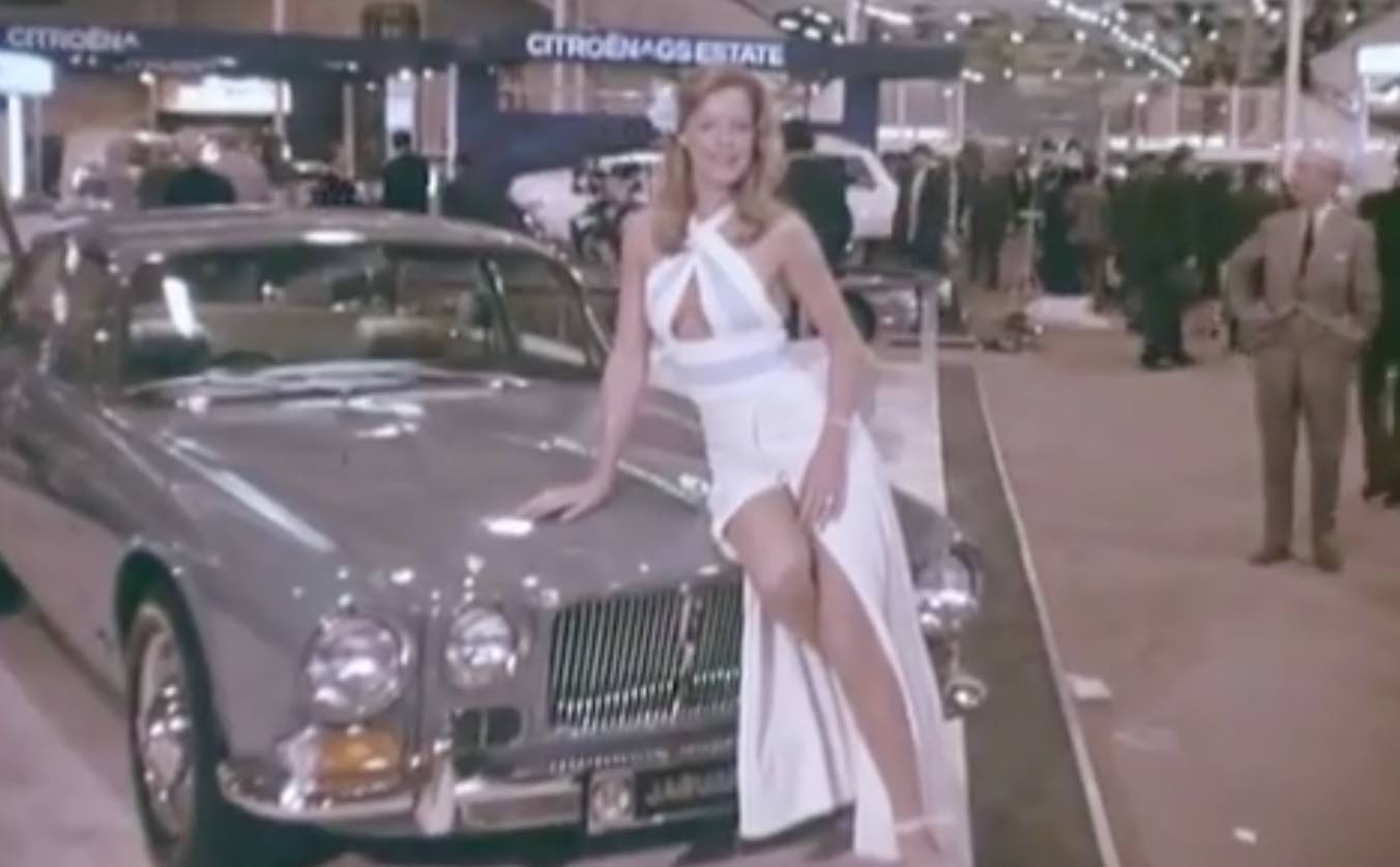 Í þá daga þótti ljómandi vel við hæfi að snotrar ungar stúlkur í sem efnisminnstum fötum væru í kringum bílana og brostu sínu blíðasta til gesta. Væri þetta svona í dag hefðu vísast til einhverjar raddir heyrst og mjög líklega allt orðið vitlaust.