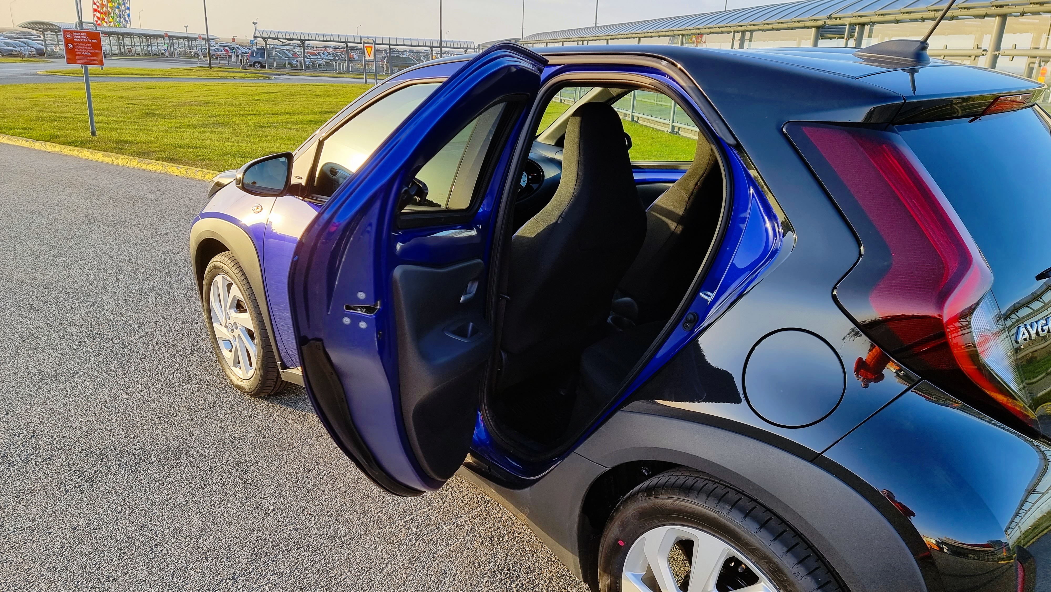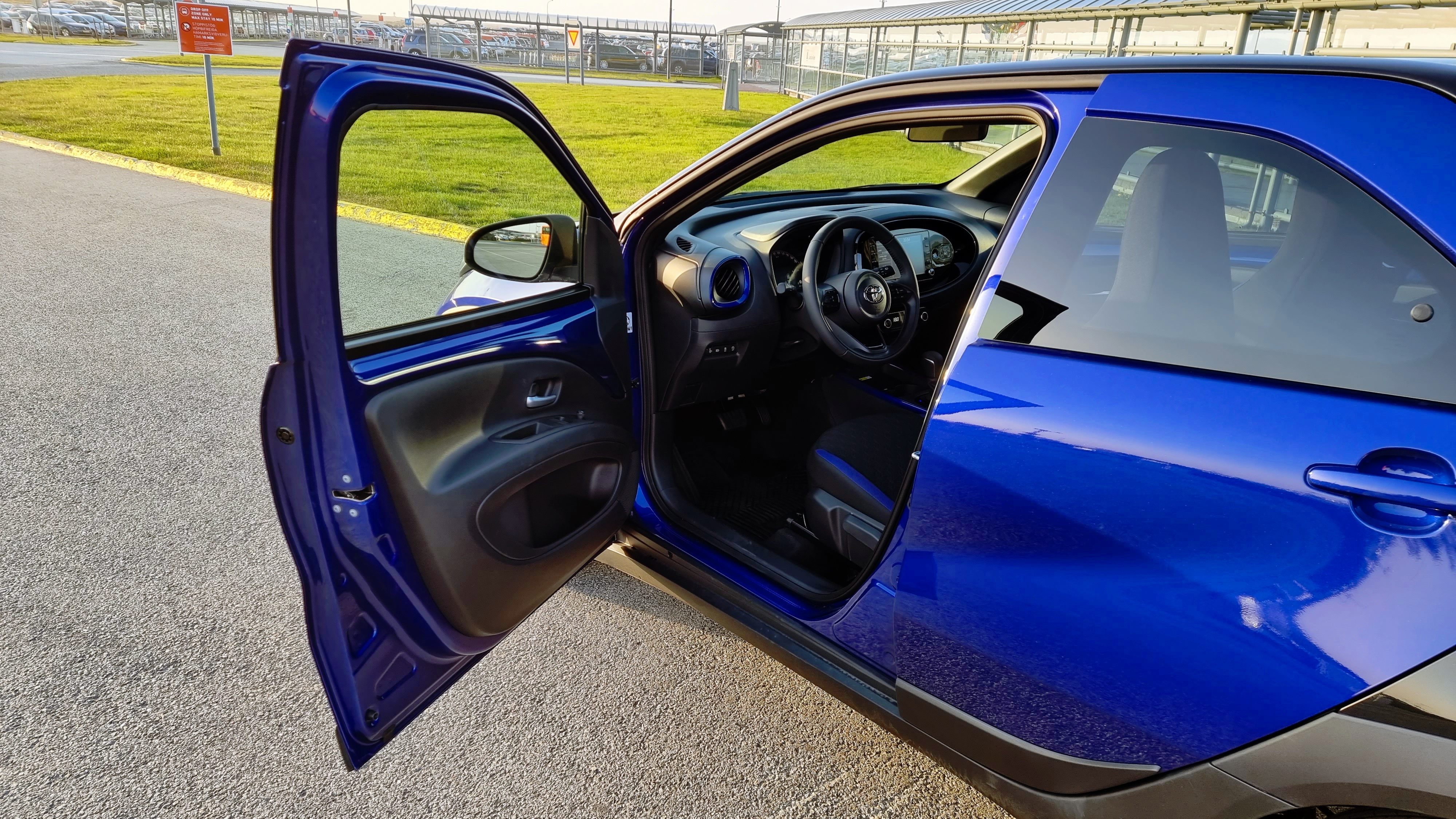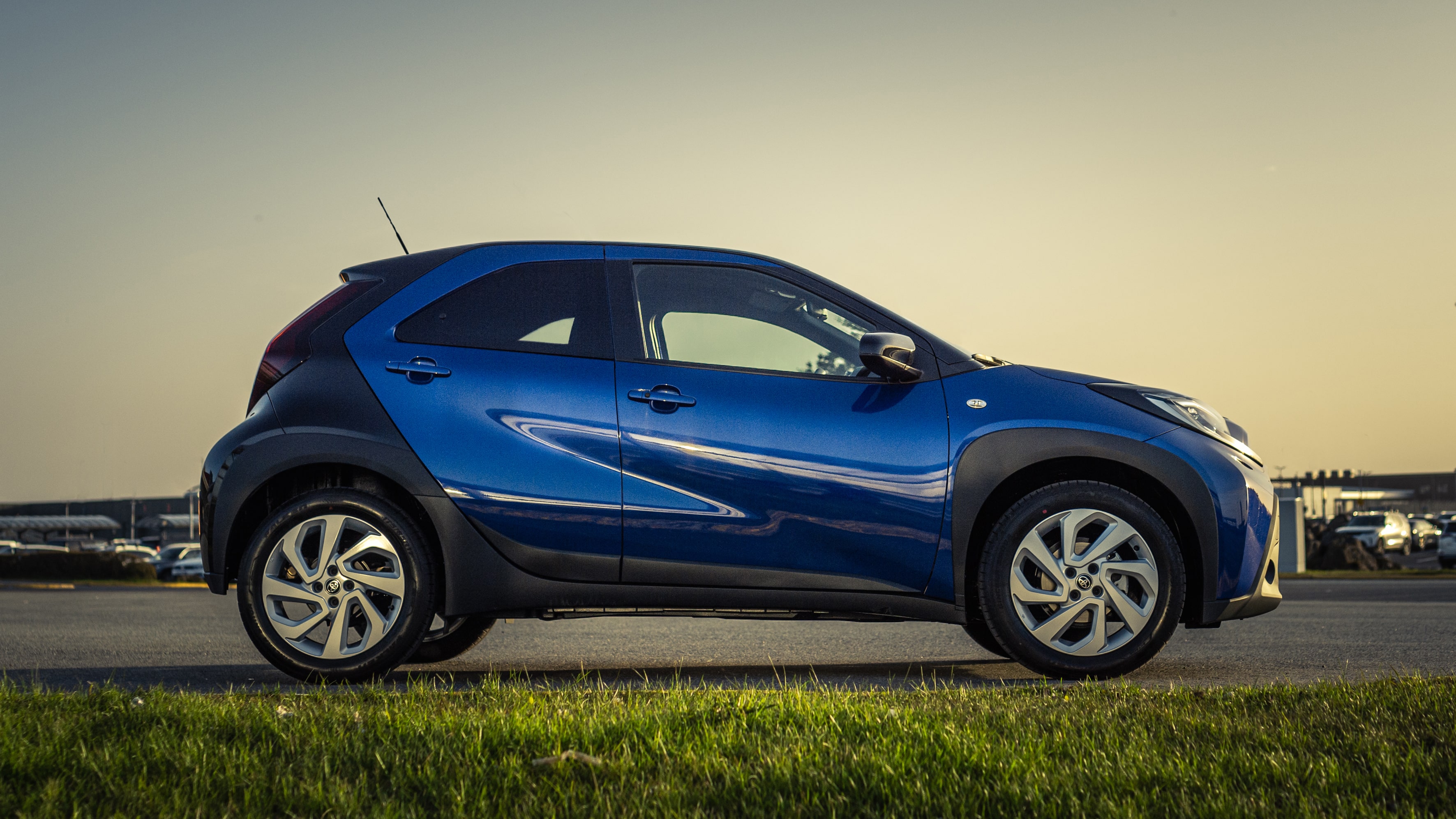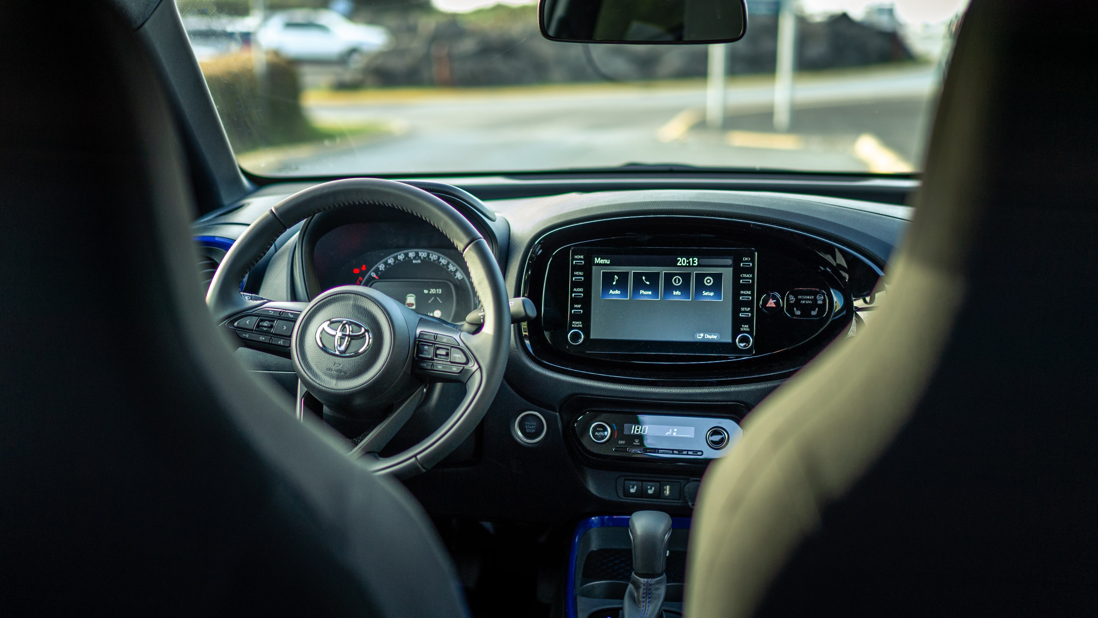 Nýi Aygo X fer sérlega vel með mann. Maður situr hærra, nægt fótapláss frammí og allt við hendina. Fjöðrun bílsins hefur fengið uppfærslu og þú finnur lítið sem ekkert við að aka yfir ójöfnur í malbiki.