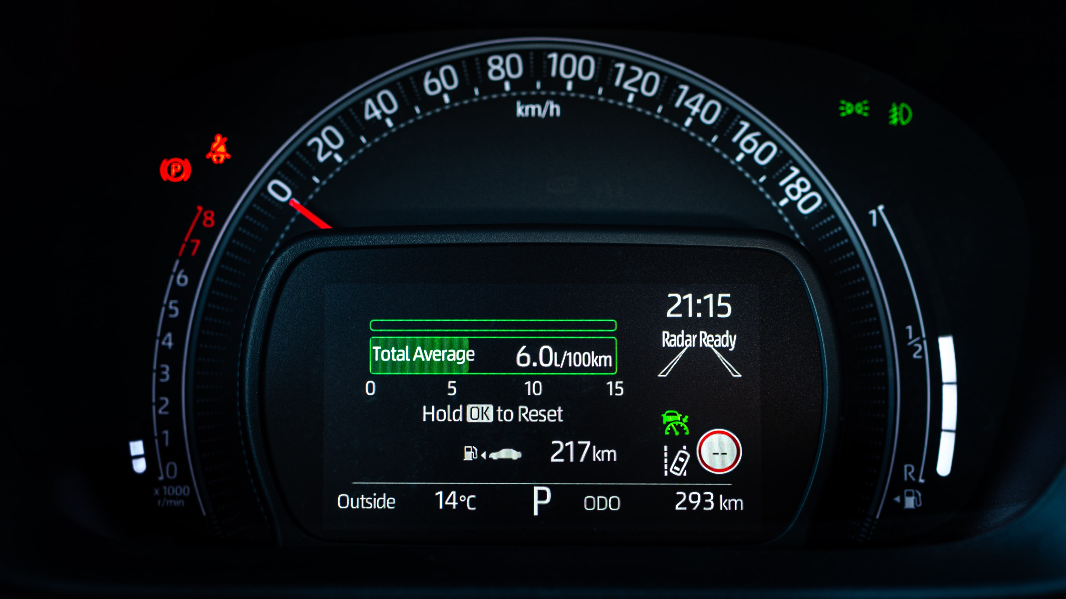 Í reynsluakstursbílnum var ennfremur skynvæddur hraðastillir, akreinavari og akreinastýring, umferðaskiltalesari og þráðlaus hleðsla á síma.