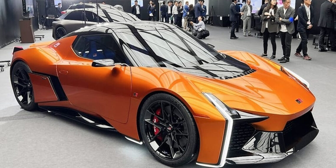 Kynþokkafulli hugmyndabíllinn er með íhvolfu, ofurlágu nefi og skúffukennd hliðarop sem eru römmuð inn af kraftmiklum lóðréttum framljósum sem renna niður framhliðina.