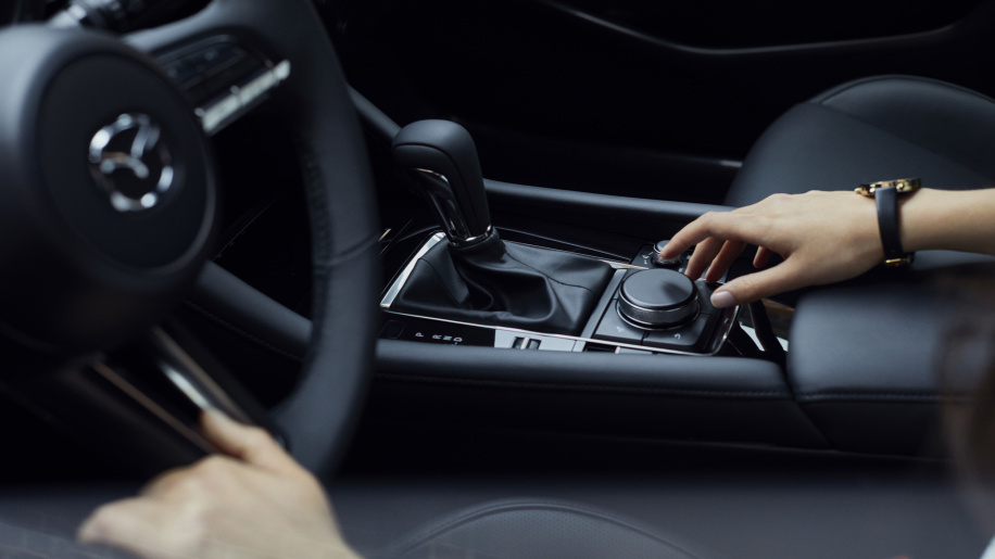 Það er sama á við um innanrýmið, hönnun sem er byggð á niðurstöðum ítarlega rannsókna Mazda á þörfum notenda. Flatara mælaborð leggur áherslu á hreinar láréttar línur. Nýtt stýri með silfurlit í örmum hnöppum, silfurlitur í hnöppum og í mælaborði. Skiptingin situr hærra og lengra fram, sem auðveldar ökumanni að færa hönd frá stýrinu til handfangsins. Til að hækka skynjun á „lúxus“ er miðjustokkurinn með svarta laserinngreypta húðun sem myndar svipað „glært útlit“ og er í nýju BMW X5 og X7. Bollahöldur eru nú fyrir framan gírstöngina og armpúðinn er lengri. Það vakti athygli blaðamanna á sýningunni að stafræna mælaborðið sem myndir sáust af fyrr á árinu er ekki komið hér í Mazda3.