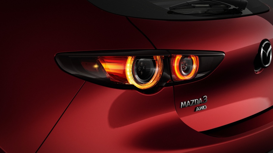 Hér hafa hönnuðir Mazda komið fram með bíl með útlínur sem gefa bílnum nýtt yfirbragð, sem endurskilgreinir útlit og nærveru Mazda3. Hin nýja gerð eyðir línum og upphleyptum atriðum svo að allar línur eru mun mýkri. Á hvorri hlið stærri grills fá linsuljósker nýtt útlit. Í stað þess að vera bara látlaus silfurrönd, gefa gulbrún stefnuljósin nýtt útlit. Afturljósin eru líka komin með nýtt yfirbragð, tvöföld ljós sem eru líklega með enn áhrifameira útlit að nóttu til. Á fólksbílnum eru afturljósin með fágaðri umgjörð.