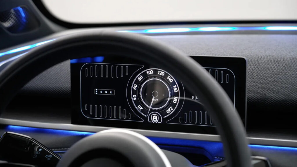 Fyrst og fremst mun framleiðslubíllinn líklega halda skjá hugmyndabílsins á mælaborðinu – 10,9 tommu skjár fyrir ökumann og 12,9 tommu upplýsinga- og afþreyingarskjár.