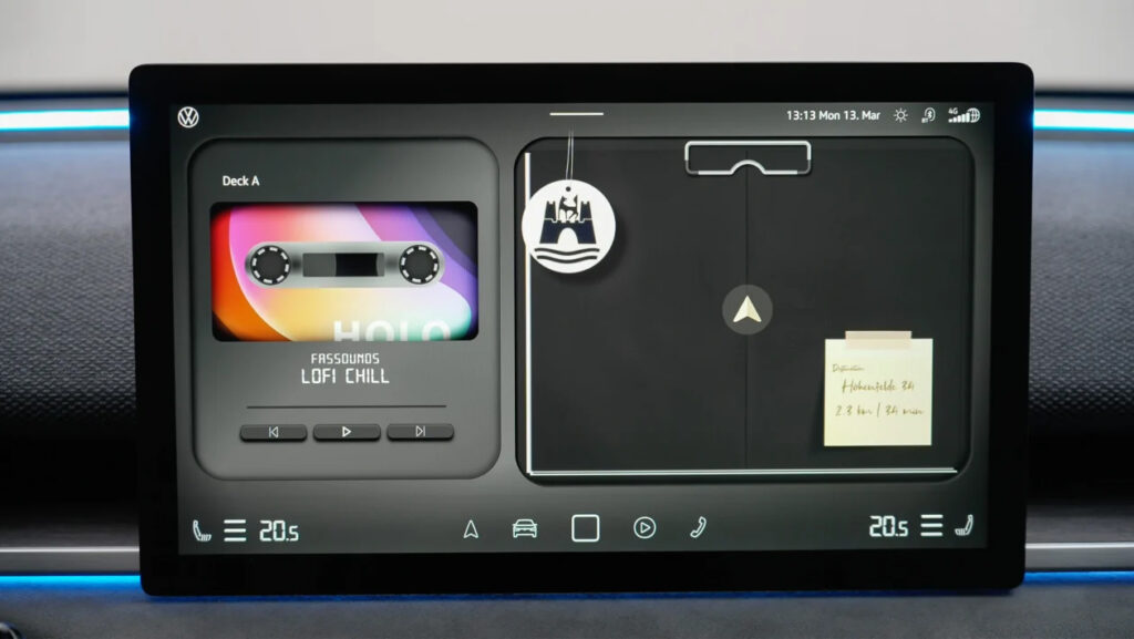 En stærri breytingin er að hverfa frá stjórntækjum innan snertisvæða eða skjáa og afturhvarf til raunverulegrar stýringar á lykilþáttum eins og hljóðstyrk og hitastigi í innanrými. Á ID.2all hugmyndabílnum eru þessar stýringar fyrir neðan miðjuskjáinn.