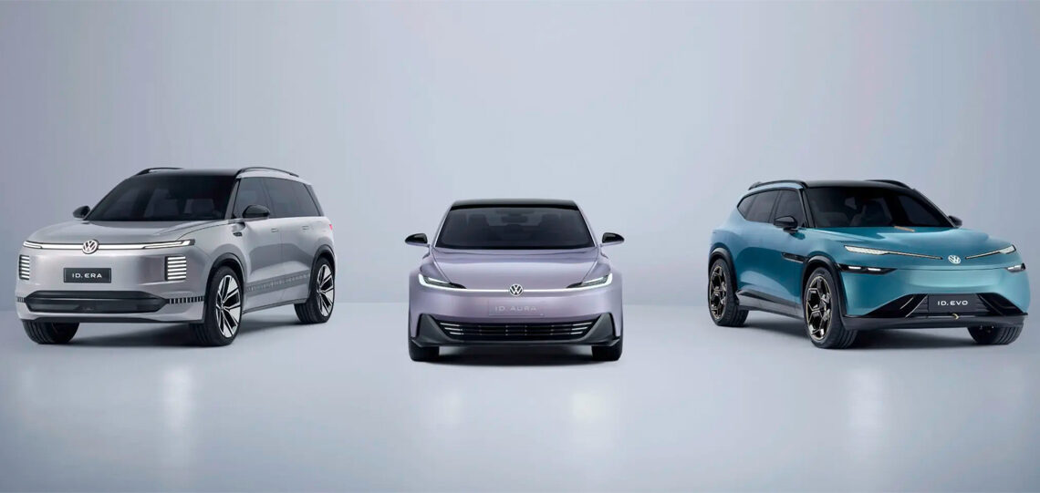 ID. AURA (frá FAW-Volkswagen), ID. ERA (frá SAIC Volkswagen) og ID. EVO (frá Volkswagen Anhui) eru gerðarnöfn bílanna sem nú var verið að sýna.