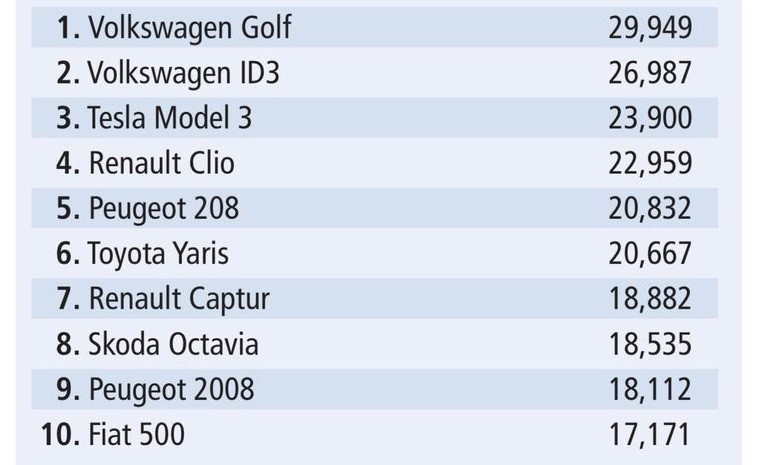 ID3 var nálægt því að ná VW Golf í desember. Golf var söluhæsti bíll Evrópu í mánuðinum með 29.949 selda bíla, en næsti keppinautur hans var ID3 og seldist hann í 26.987 eintökum, samkvæmt söluskýrslu Automotive News Europe og JATO Dynamics í desember.