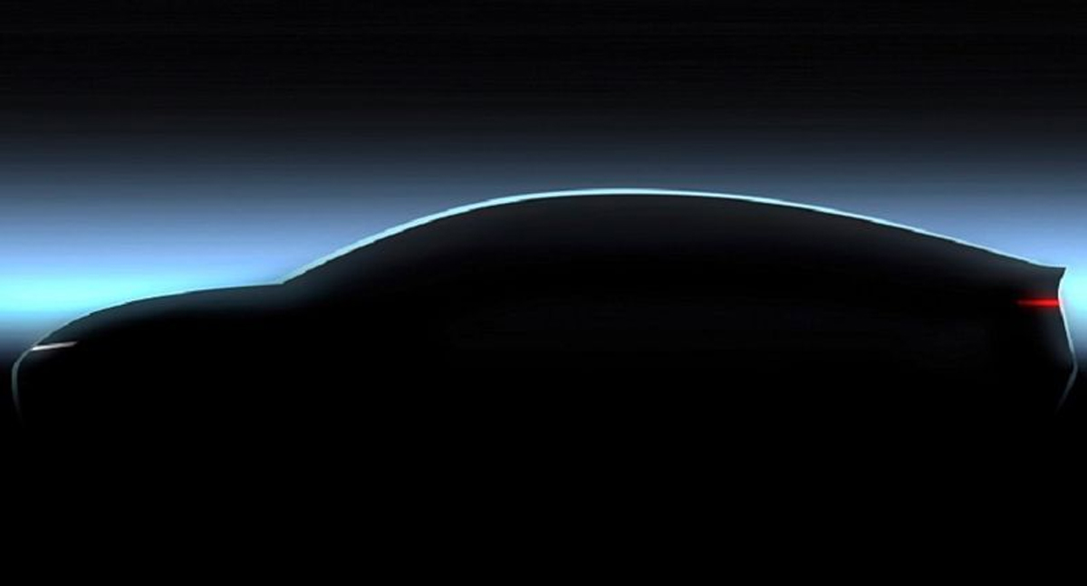 Skuggamyndin gefur til kynna fjögurra hurða „fastback“ sem gæti verið fyrir neðan Aero, meðalstóra rafknúna fólksbílinn, sem er áætlað að komi á markað árið 2023.